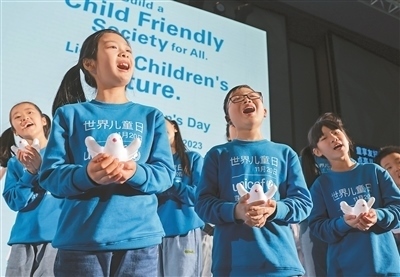 11月20日,世界兒童日主題慶?;顒釉诒本┡e行。中國多地在聯(lián)合國兒童基金會的支持下,用象征兒童友好的藍色燈光點亮了當?shù)貥酥拘越ㄖ蛏鐓^(qū),以表達人們對實現(xiàn)兒童權(quán)利的承諾。今年世界兒童日的主題是“童享友好世界,點亮兒童未來”。