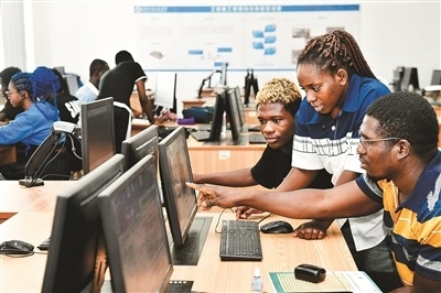 2024年9月,加納學(xué)生在日照職業(yè)技術(shù)學(xué)院智慧建造中心進行建筑軟件繪圖練習(xí)。
