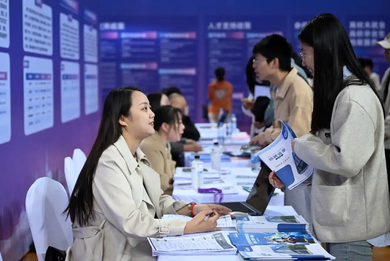 3月20日,環(huán)渤海城市聯(lián)合招聘高校畢業(yè)生春季專(zhuān)場(chǎng)活動(dòng)在天津職業(yè)技術(shù)師范大學(xué)啟動(dòng),來(lái)自環(huán)渤海地區(qū)400多家企業(yè)提供崗位1.1萬(wàn)個(gè)?;顒?dòng)現(xiàn)場(chǎng)還設(shè)立就業(yè)服務(wù)臺(tái),為學(xué)生提供指導(dǎo)。圖為當(dāng)日,求職學(xué)生(右)和招聘方代表在招聘會(huì)現(xiàn)場(chǎng)交談。新華社記者 趙子碩攝