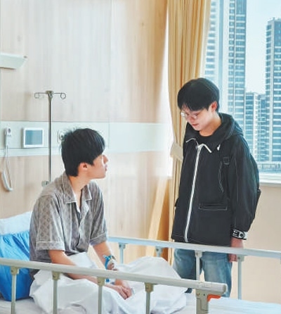 參加補考后,姜昭鵬的腳步格外輕快?!鞍l(fā)揮還可以。我是帶著大家的期待走進考場的,這對我來說有著特殊的意義?!笨纪暝?,姜昭鵬馬上去探望同學,兩人見面,相視而笑?!拔覀兗s好了,等他康復,找地方吃頓飯?!苯样i說。
