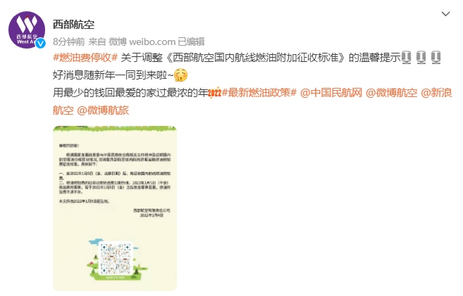 圖片來源:西部航空官方微博截圖