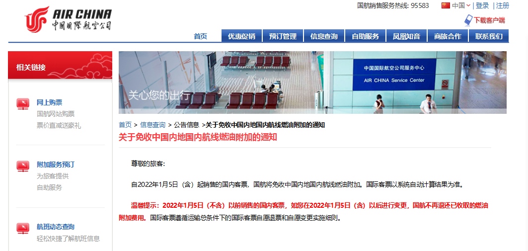 1月5日起取消征收國內(nèi)航線燃油附加費(fèi)