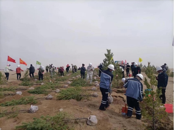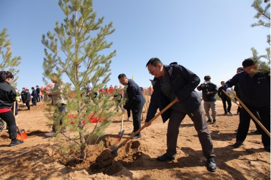 北疆新聞網(wǎng)、北疆新聞APP、北疆云消息(張博)黃河中上游沿岸,谷雨時節(jié),在庫布其沙漠和騰格里沙漠腹地,植樹擴綠正隨著光伏治沙降碳而延伸,描繪著藍綠交織、水沙和諧、鄉(xiāng)村振興的工筆畫。4月22日是第53個世界地球日,也是第18屆庫布其植樹節(jié),蒙西基地庫布其200萬千瓦光伏治沙項目現(xiàn)場、甘肅武威50萬千瓦光伏治沙項目現(xiàn)場同步舉行大型植樹紀念活動,主題為“光伏治沙護河,庫布其降碳擴綠與鄉(xiāng)村振興”,正式啟動庫布其“十四五”1億棵碳匯林工程第二期種植。億利集團董事長王文彪表示:“‘十四五’期間,我們將在黃河流域的庫布其沙漠、烏蘭布和沙漠、騰格里沙漠的億利治沙區(qū)域建設(shè)上百公里治沙護河碳匯林帶,2021年已如期完成2000萬棵種植任務(wù),2022年將繼續(xù)通過‘政策+產(chǎn)業(yè)+公益’的模式,實施光伏板下種植和沙漠生態(tài)種植,確保完成2000萬棵種植任務(wù)。億利庫布其治沙科技和經(jīng)驗?zāi)J揭沧呱狭宋鞑啬乔吆吆0蔚貐^(qū),成功種活了近40萬株鄉(xiāng)土樹種,我們將加快推動那曲城鎮(zhèn)植樹關(guān)鍵技術(shù)研發(fā)與綠化模式示范項目成果的規(guī)?;茝V?!被顒蝇F(xiàn)場全面啟動了國家在庫布其沙漠規(guī)劃的退化林修復(fù)工程、蒙西基地2GW光伏治沙和甘肅武威500兆瓦光伏治沙項目板下生態(tài)種植工程、杭錦旗林草局和團委保護母親河工程、螞蟻森林、大鉦資本庫布其沙漠雙碳公益林、鄂爾多斯中小企業(yè)庫布其公益林、杭錦旗工商聯(lián)林、杭錦旗稅務(wù)碳匯林等多個生態(tài)植樹項目。