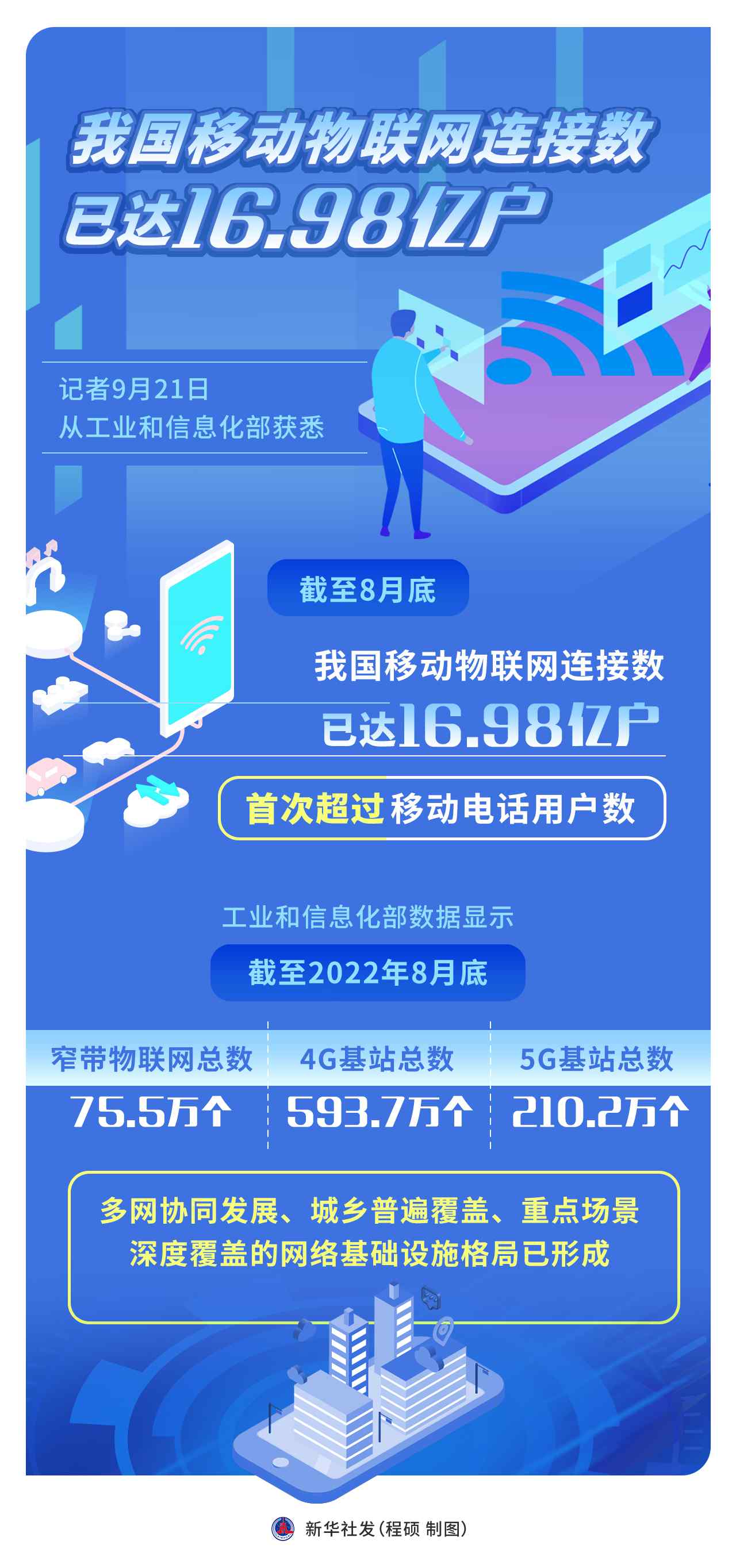 記者21日從工業(yè)和信息化部獲悉,截至8月底,我國移動物聯(lián)網(wǎng)連接數(shù)已達(dá)16.98億戶,首次超過移動電話用戶數(shù)。