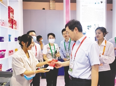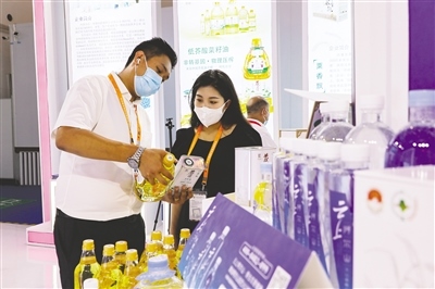第二屆中國(guó)國(guó)際消費(fèi)品博覽會(huì)(以下簡(jiǎn)稱消博會(huì))在海南省??谑信e辦。內(nèi)蒙古展館的綠色優(yōu)質(zhì)產(chǎn)品引來(lái)圍觀。蒙牛乳業(yè)、敖漢小米、科爾沁牛肉、芥花油等內(nèi)蒙古多個(gè)綠色優(yōu)質(zhì)品牌及產(chǎn)品亮相消博會(huì)。同時(shí),70多家交易商組成內(nèi)蒙古展團(tuán)觀展。本屆消博會(huì)主題為“共享開放機(jī)遇共創(chuàng)美好生活”,于7月25日開幕,為期6天。(文/圖 本報(bào)記者 李永桃)