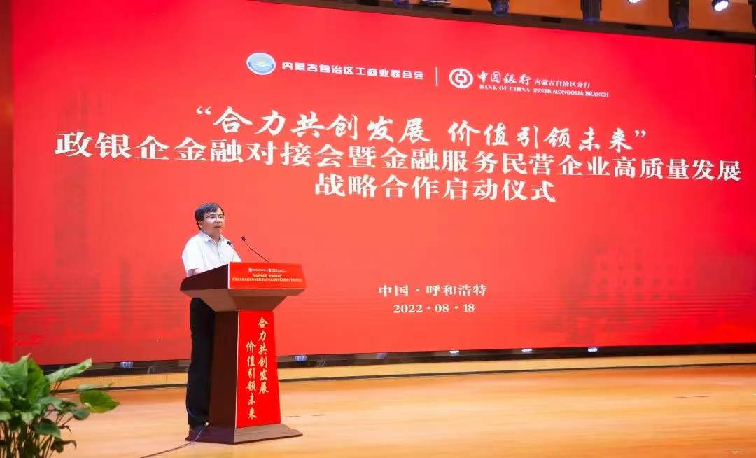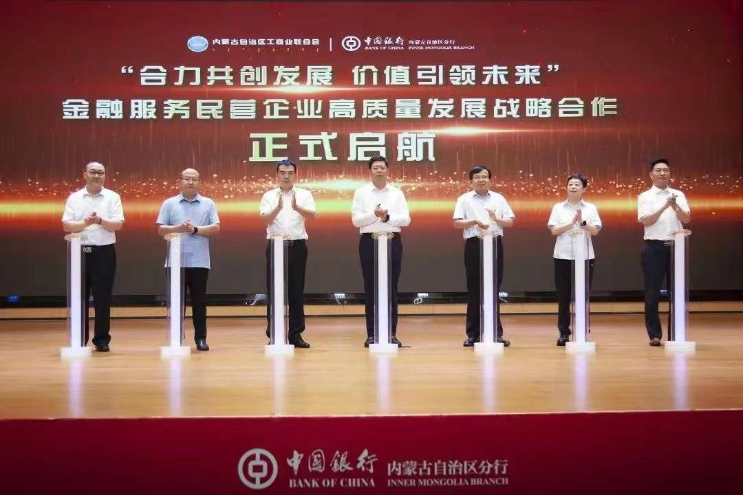 8月18日,中國銀行內(nèi)蒙古自治區(qū)分行與內(nèi)蒙古自治區(qū)工商業(yè)聯(lián)合會“合力共創(chuàng)發(fā)展 價值引領(lǐng)未來”政銀企金融對接會暨金融服務(wù)民營企業(yè)高質(zhì)量發(fā)展戰(zhàn)略合作啟動儀式在呼和浩特舉行。自治區(qū)政協(xié)副主席、工商業(yè)聯(lián)合會主席安潤生,自治區(qū)工商業(yè)聯(lián)合會提名副主席溫殿龍,中國銀行內(nèi)蒙古自治區(qū)分行黨委書記、行長胡文勇,中國銀行內(nèi)蒙古自治區(qū)分行黨委委員、副行長雲(yún)雯妍出席活動。自治區(qū)工商業(yè)聯(lián)合會相關(guān)部門以及行業(yè)協(xié)會、商會、企業(yè)代表,中國銀行內(nèi)蒙古自治區(qū)分行相關(guān)部門及直屬支行負(fù)責(zé)人參加活動。