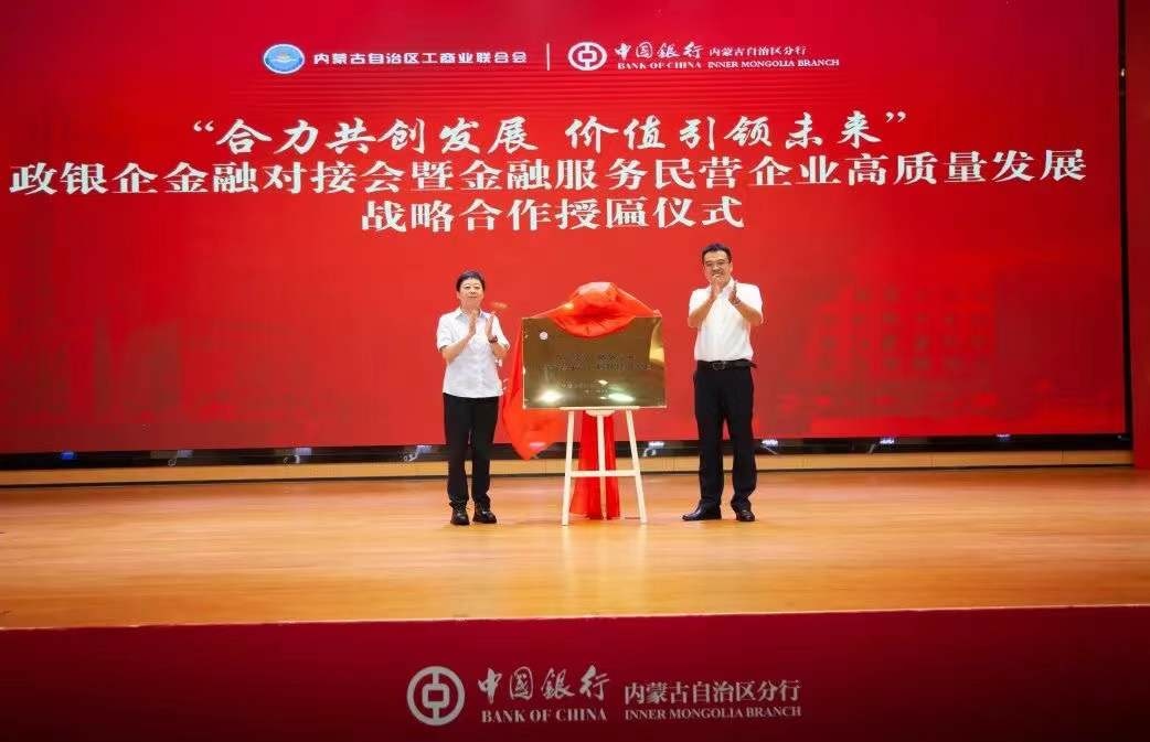 簽約儀式上,溫殿龍、雲(yún)雯妍分別代表雙方簽署戰(zhàn)略合作協(xié)議。中國銀行內(nèi)蒙古自治區(qū)分行和兩家直屬支行與行業(yè)協(xié)會、商會及企業(yè)代表分別簽署合作協(xié)議。同時,為鞏固雙方合作成果,共同推進發(fā)展新篇,自治區(qū)工商業(yè)聯(lián)合會向中國銀行內(nèi)蒙古自治區(qū)分行授予“金融賦能,助企紓困,服務(wù)民營小微企業(yè)戰(zhàn)略合作單位”牌匾。