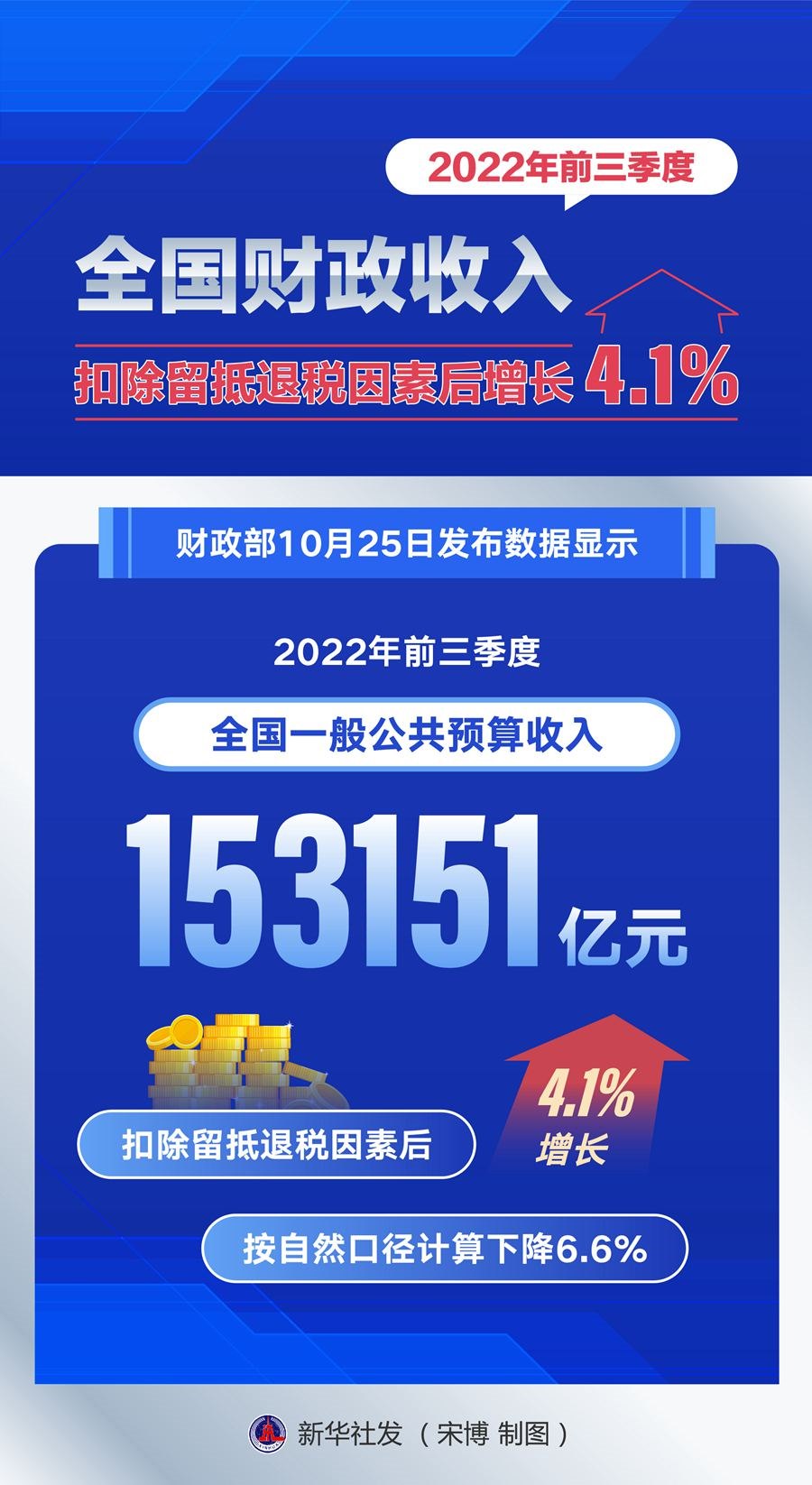 前三季度全國財政收入扣除留抵退稅因素后增長4.1%