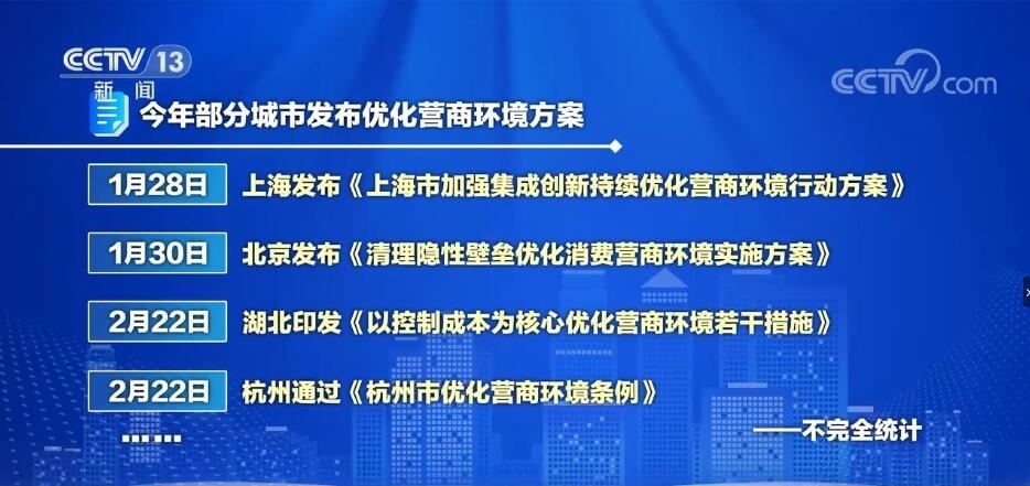 解說:同樣是在1月28日,吉林省將營商環(huán)境作為年度重點工作之一,民營經濟大省福建舉行了民營經濟代表人士座談會,上海更是將優(yōu)化營商環(huán)境建設作為開年第一會的主題。