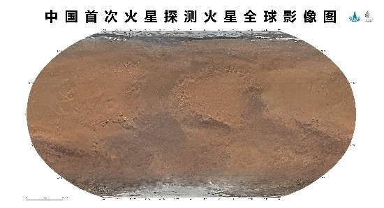 天問一號任務(wù)環(huán)繞器中分辨率相機(jī),于2021年11月至2022年7月歷時8個月,實(shí)施了284軌次遙感成像,對火星表面實(shí)現(xiàn)了全球覆蓋。地面應(yīng)用系統(tǒng)對獲取的14757幅影像數(shù)據(jù)進(jìn)行處理后得到火星全球彩色影像圖。