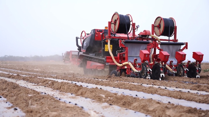 近日,在山東省德州市武城縣中椒英潮辣業(yè)發(fā)展有限公司辣椒種植示范基地,一臺(tái)無(wú)人駕駛的辣椒直播機(jī)來(lái)回穿梭,不僅將辣椒種子播種下去,同時(shí)一體化實(shí)現(xiàn)了地膜覆蓋,這也是德州市首次實(shí)現(xiàn)辣椒機(jī)械直播。