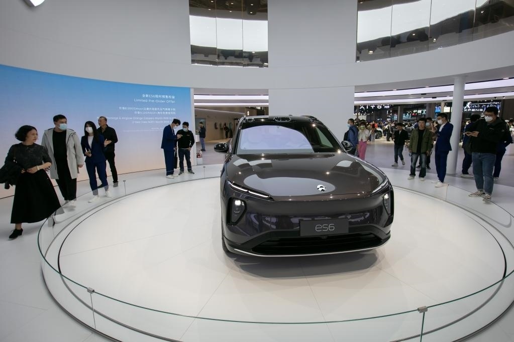 4月25日,人們?cè)谏虾\?chē)展上參觀正式首發(fā)亮相的蔚來(lái)全新ES6。新華社記者王翔攝