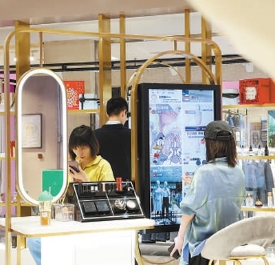揮揮手臂,站在智能試衣鏡前就能看到多款服飾的“試穿”效果;劃劃屏幕,就能在智能派樣機(jī)上選取化妝品小樣;在手機(jī)上打開“喵街”應(yīng)用,各品牌門店的電子地圖導(dǎo)引一目了然……在銀泰百貨西安曲江店,智慧消費場景為消費者帶來了便捷舒適的購物體驗。“我們不斷提升商圈數(shù)字化、智能化水平,進(jìn)一步滿足消費者的多元需求。今年‘五一’假期,我們店的客流量同比增長了228.9%?!便y泰百貨西安曲江店企劃負(fù)責(zé)人趙曉彤介紹。