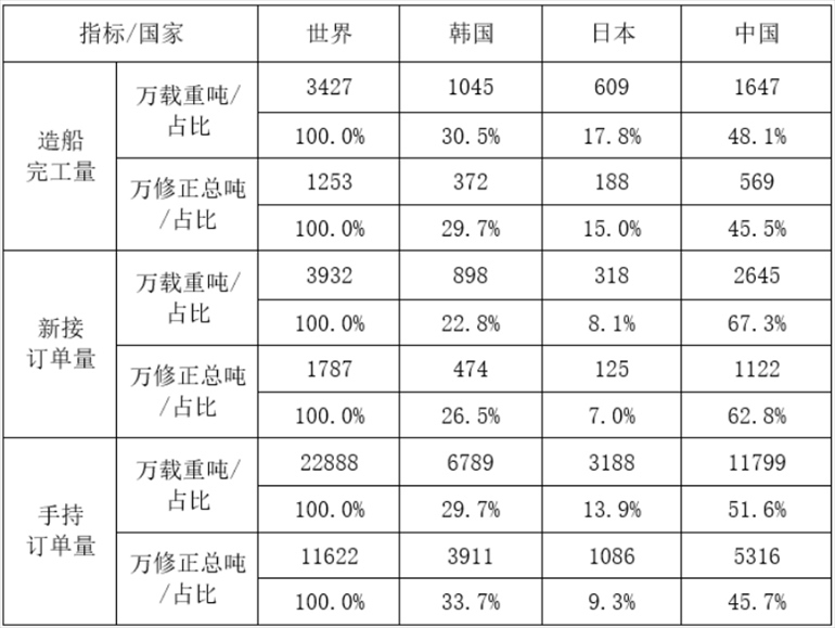 另據(jù)數(shù)據(jù)顯示,1-5月,全國造船完工量569萬修正總噸,同比增長29%;新承接船舶訂單量1122萬修正總噸,同比增長24.2%。截至5月底,手持船舶訂單量5316萬修正總噸,同比增長27.4%。按修正總噸計,中國造船完工量、新接訂單量、手持訂單量分別占世界市場份額的45.5%、62.8%和45.7%。