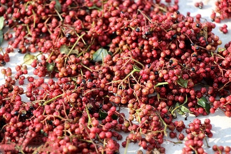 晾曬的花椒和辣椒