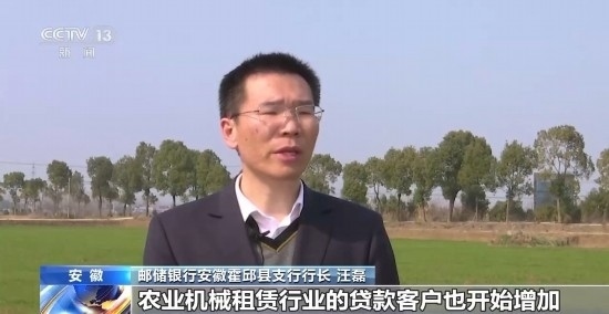 郵儲(chǔ)銀行安徽霍邱縣支行行長(zhǎng) 汪磊:隨著機(jī)械強(qiáng)農(nóng)的推進(jìn),農(nóng)業(yè)服務(wù)公司、農(nóng)業(yè)機(jī)械租賃行業(yè)的貸款客戶也開(kāi)始增加,今年這類新型客戶貸款金額同比增幅超300%。