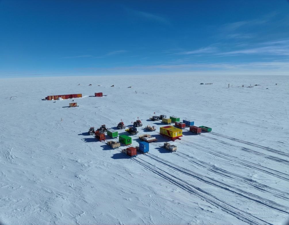 中國(guó)第41次南極考察隊(duì)的內(nèi)陸車(chē)隊(duì)抵達(dá)昆侖站。新華社發(fā)