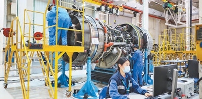 福建自貿(mào)試驗區(qū)廈門片區(qū),航空維修基地的工程師在進行發(fā)動機維修作業(yè)。