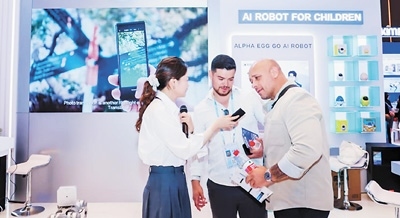 科大訊飛位于廣交會展館A區(qū)珠江散步道的服務(wù)臺前,有著20多年外貿(mào)經(jīng)歷的“老廣交”張明月仔細(xì)操作著一臺雙屏翻譯機(jī),決定購置這臺人工智能(AI)“小幫手”。