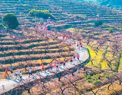 比如,“賞花+體育”?!氨寂苜F陽(yáng) 永樂(lè)桃跑”2025年第七屆南明·永樂(lè)桃花跑近日在貴州省貴陽(yáng)市南明區(qū)永樂(lè)鄉(xiāng)開(kāi)跑。4200余名跑者與140多組家庭,在十里桃林間揮灑汗水,既鍛煉身體,又沿途賞花,可謂一舉兩得。