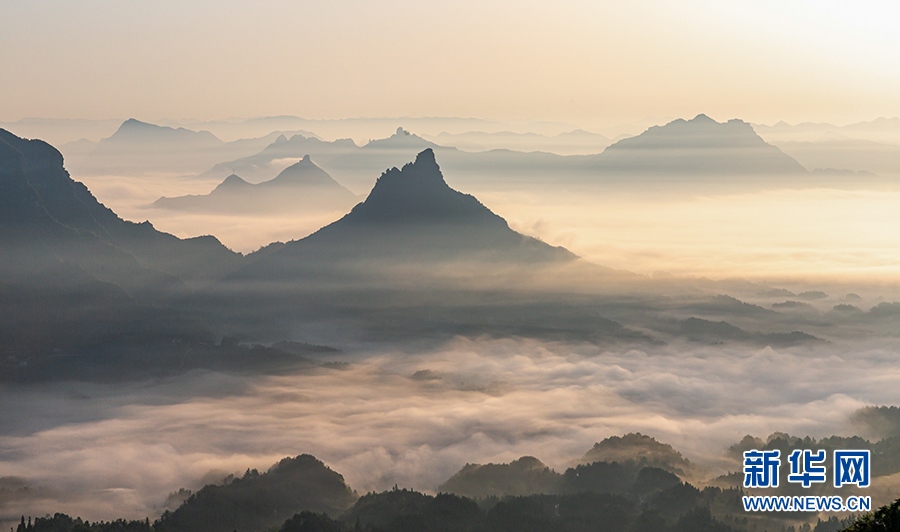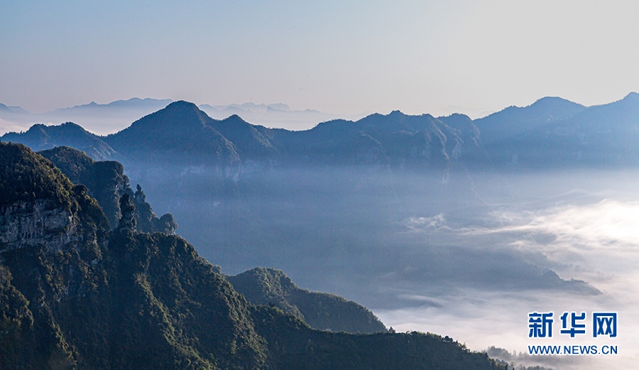 宛如薄紗的平流霧在山澗河谷漫舞。新華網(wǎng)發(fā)(瞿明斌 攝)