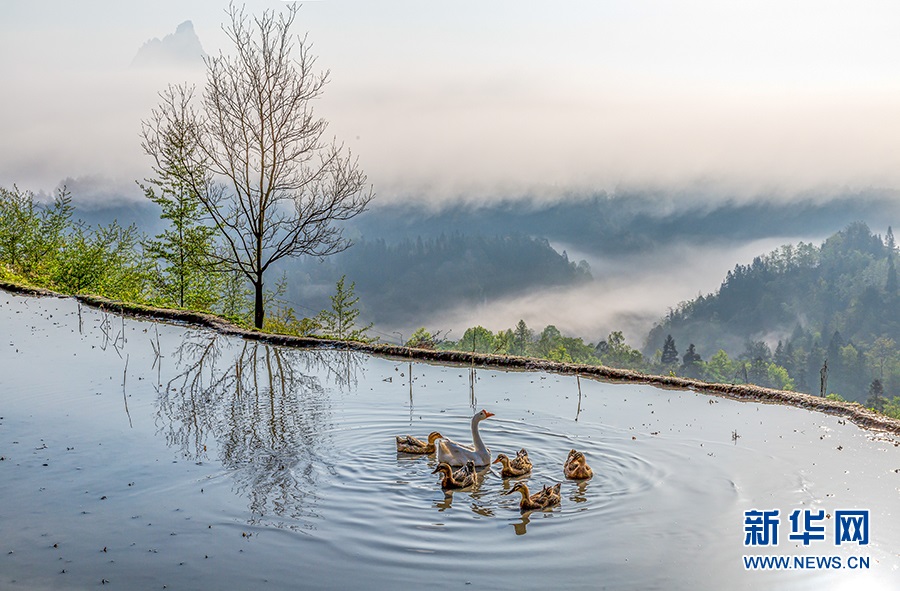春雨洗禮后的山鄉(xiāng)田野美如畫(huà)卷。新華網(wǎng)發(fā)(瞿明斌 攝)