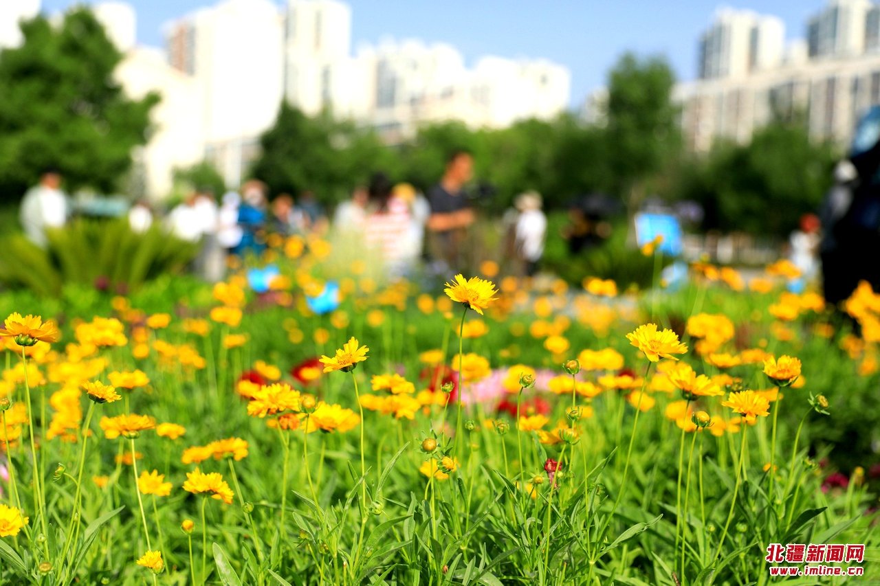 8月4日,呼和浩特市草原絲綢之路文化公園,一處280平方米的花境吸引眾多游人前來參觀打卡。