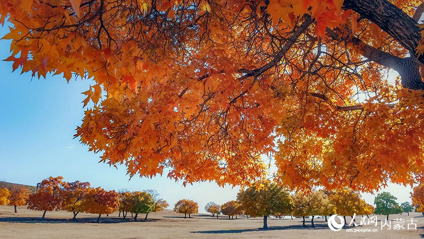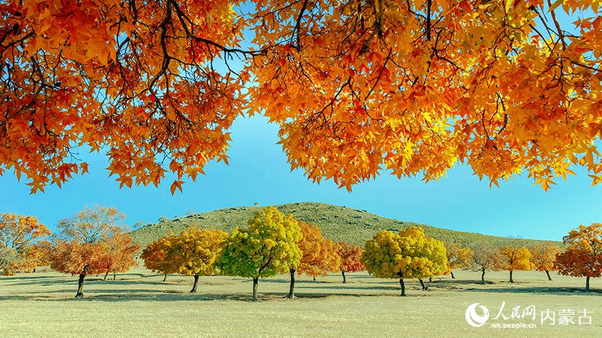 十月深秋,漫山紅遍。內(nèi)蒙古興安盟五角楓迎來(lái)最佳觀賞期。颯颯金風(fēng)拂過,五角楓林層林盡染,楓葉形態(tài)各異、五彩繽紛。秋日“楓”景美不勝收。(富麗娟、劉藝琳)