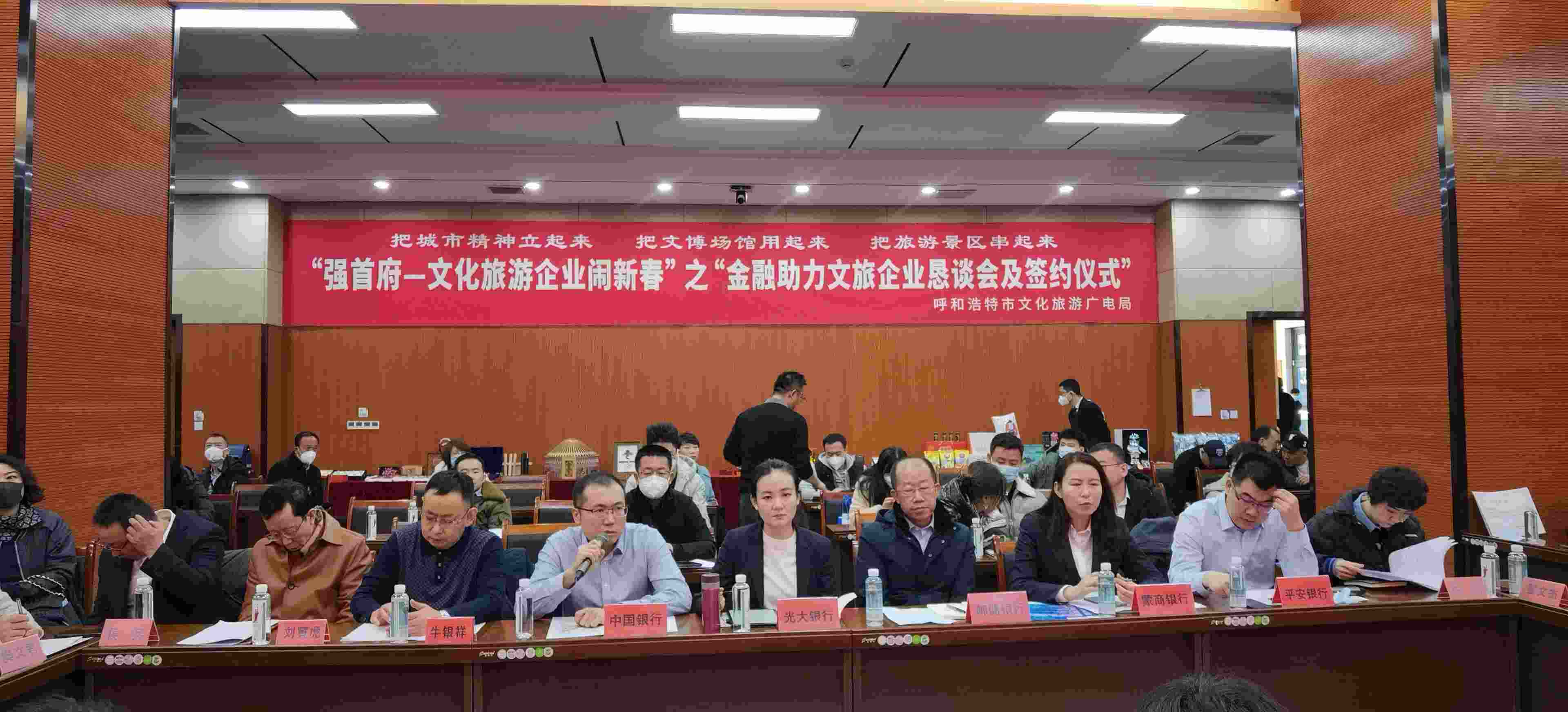 2月4日,呼和浩特市文化旅游廣電局與呼市工商聯(lián)(總商會(huì))舉辦“強(qiáng)首府—文化旅游企業(yè)鬧新春”之“金融助力文旅企業(yè)懇談會(huì)及簽約儀式”,共同為首府提振市場(chǎng)信心、促進(jìn)文化旅游產(chǎn)業(yè)高質(zhì)量發(fā)展、促進(jìn)首府“六大產(chǎn)業(yè)集群”作出貢獻(xiàn)。