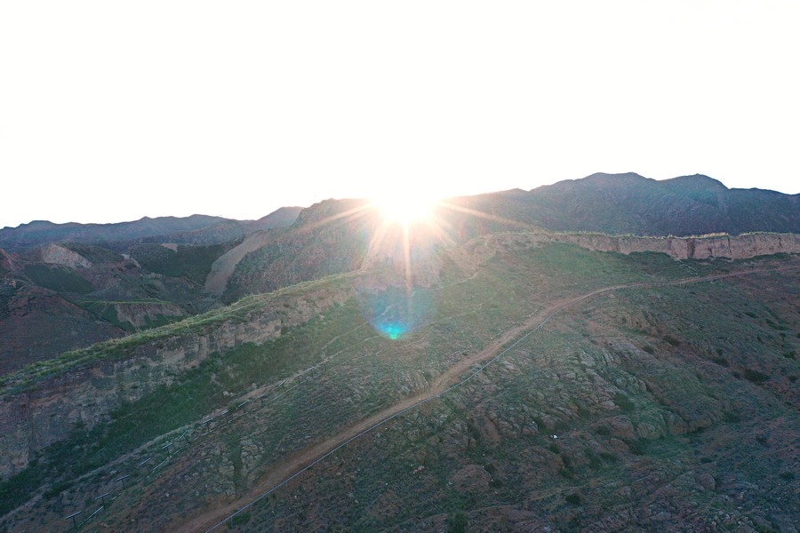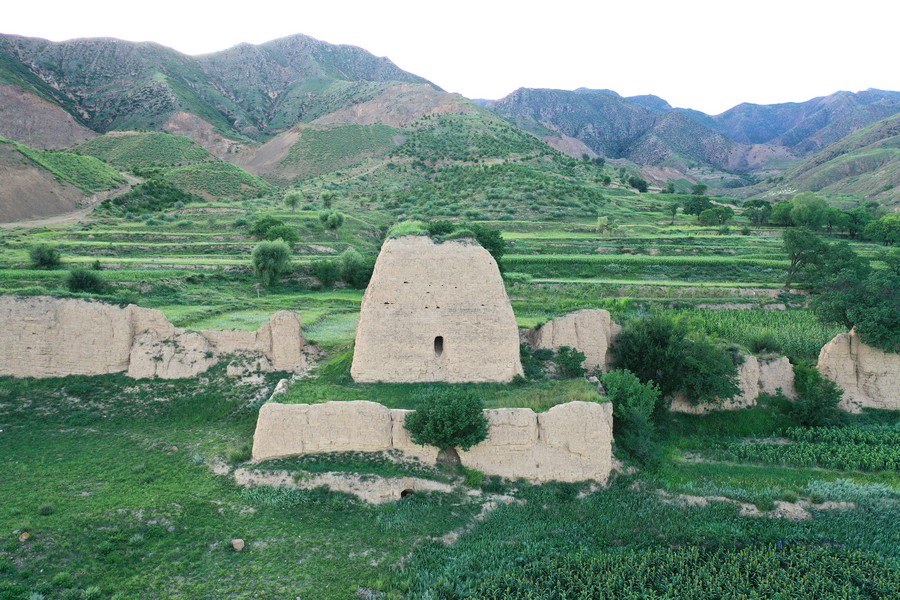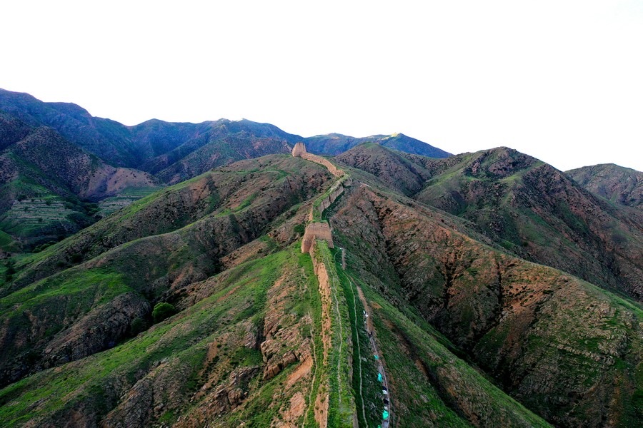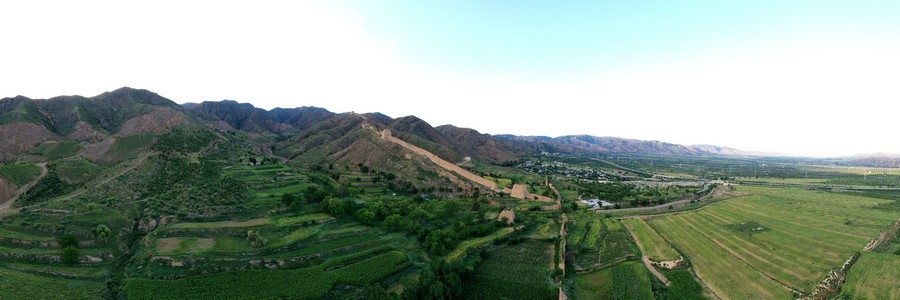 8月16日,從空中視角,俯瞰山西大同天鎮(zhèn)李二口長(zhǎng)城。