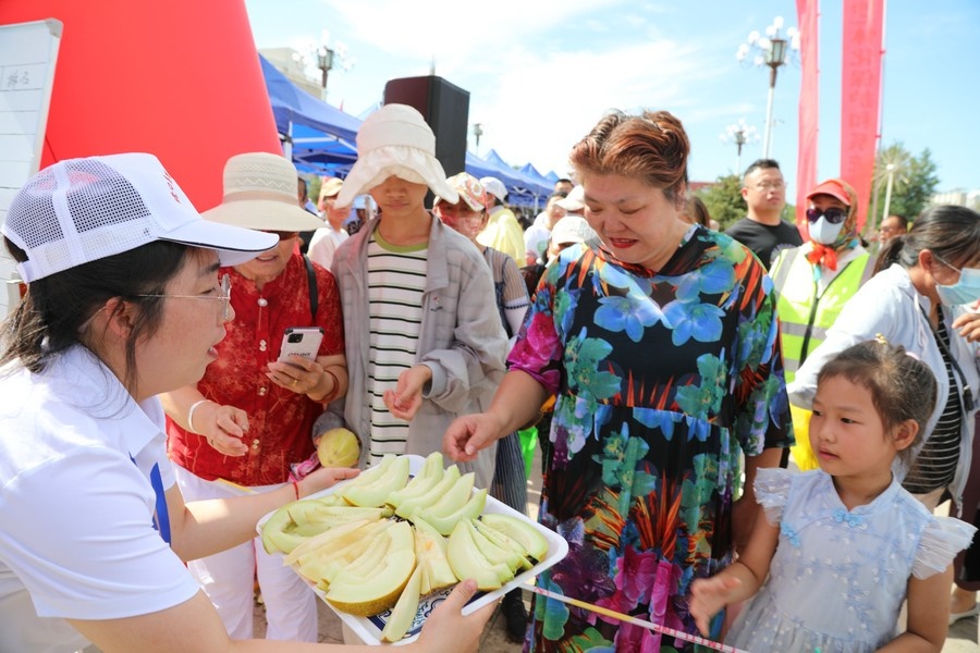 北疆新聞磴口7月18日電 7月18日,以“建設(shè)富饒美麗、開放包容新磴口”為主題的磴口縣慶祝中華人民共和國成立75周年暨第三十二屆華萊士節(jié)開幕。啟動儀式上,舉行了華萊士瓜品評、特色農(nóng)產(chǎn)品展示等活動。