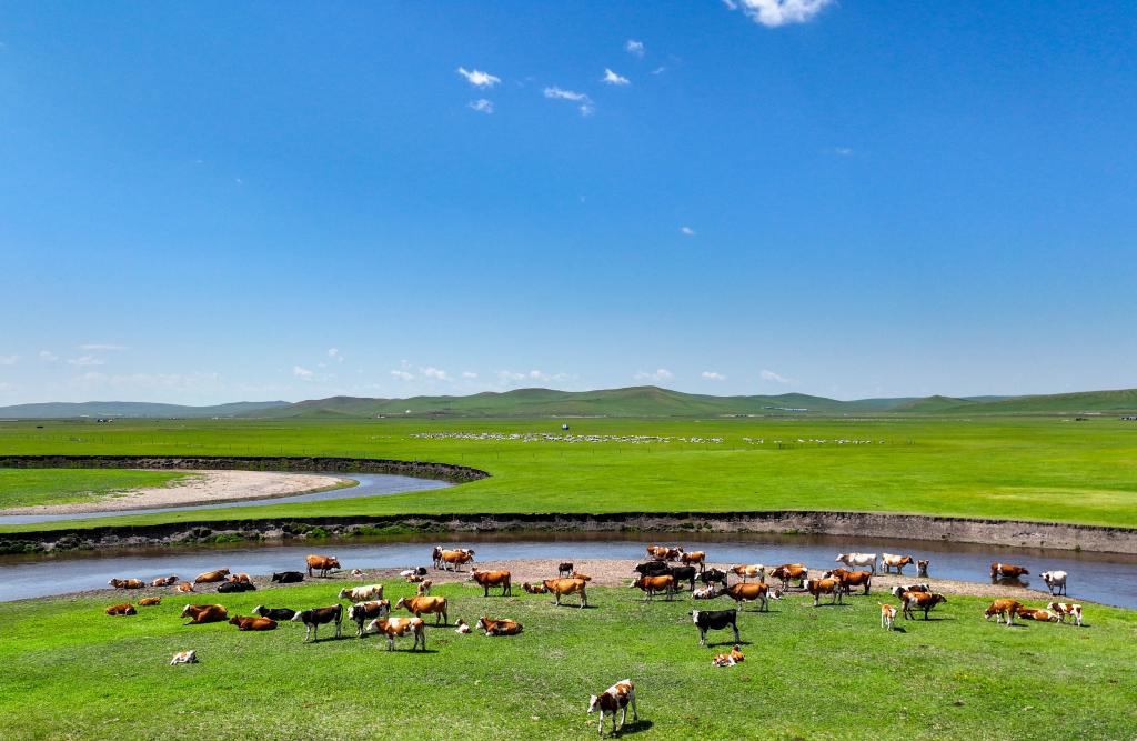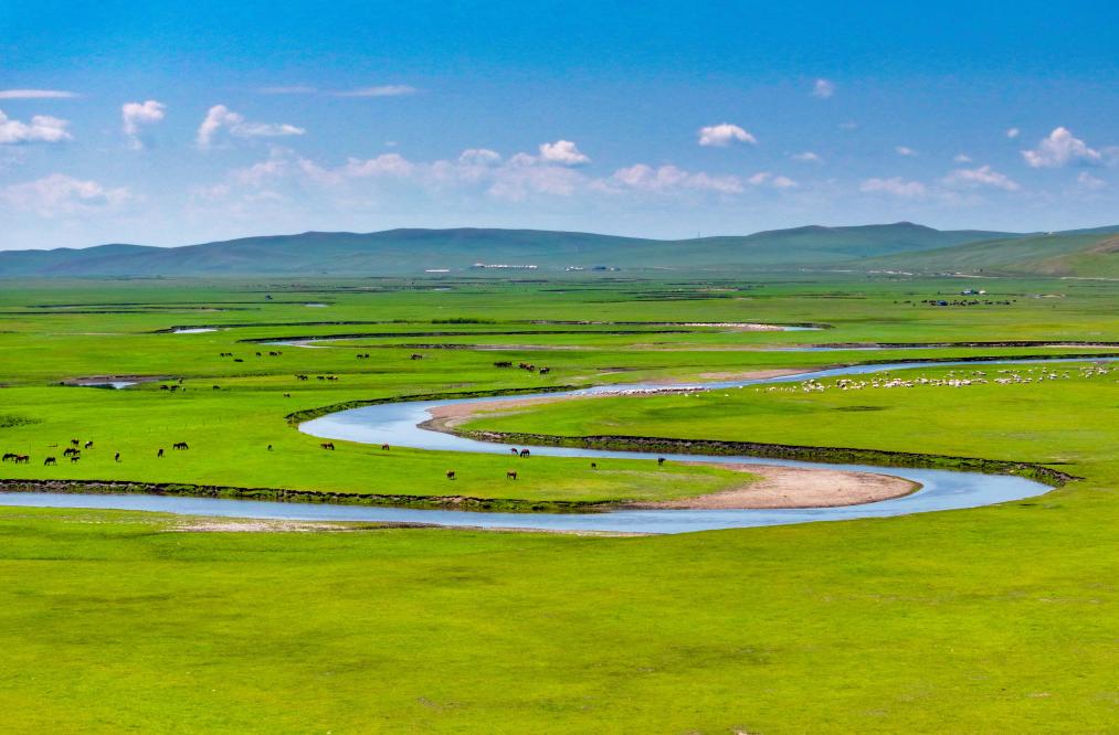 以“曲”聞名天下的莫爾格勒河發(fā)源于內(nèi)蒙古自治區(qū)呼倫貝爾市陳巴爾虎旗境內(nèi),全長(zhǎng)319公里。盛夏時(shí)節(jié),迂回輾轉(zhuǎn)的河道、低垂的云影、成群的牛羊共同構(gòu)成一幅宛如油畫(huà)般的草原風(fēng)情畫(huà)卷。