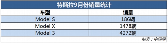 從單月成績來看,9月份,隨著特斯拉Model 3進(jìn)口量的增加,特斯拉在該月進(jìn)口數(shù)量約為0.43萬輛新車,同比大幅增長近287%。伴隨進(jìn)口量的增加,特斯拉在國內(nèi)的銷量也有突出表現(xiàn),根據(jù)乘聯(lián)會9月份數(shù)據(jù)統(tǒng)計,特斯拉Model S的銷量為186輛;Model X的銷量為1478輛;Model 3的銷量為4272輛。詳情見下表: