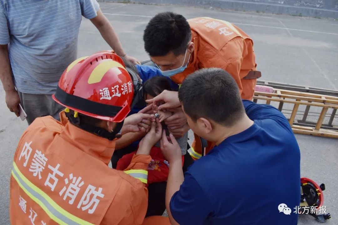 7月2日,霍林郭勒市消防救援大隊指戰(zhàn)員們正在進行日常訓練時,一輛出租車緊急停在了大隊門前,一對夫婦抱著啼哭不止的4歲女童從車上下來,焦急地尋求消防員的幫助,原來4歲女童的手指被螺母卡住無法取下,孩子父母才趕來消防隊求助。