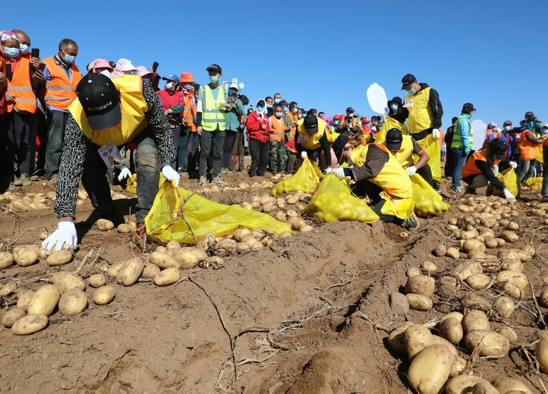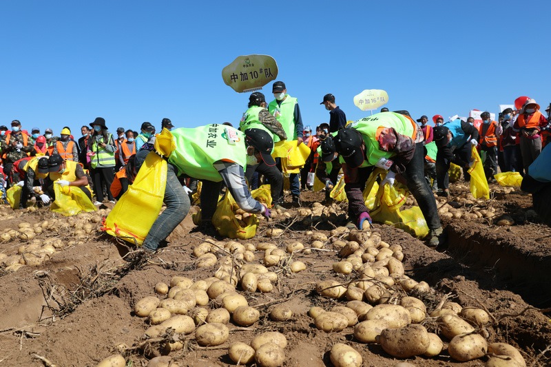 9月17日,四子王旗在大黑河鄉(xiāng)中加農(nóng)業(yè)豐收地農(nóng)場(chǎng)舉辦了“神奇吧,土豆”農(nóng)民豐收節(jié)。豐收節(jié)現(xiàn)場(chǎng),四子王旗烏蘭牧騎進(jìn)行了演出,內(nèi)蒙古中加農(nóng)業(yè)生物科技有限公司舉行了趣味農(nóng)民運(yùn)動(dòng)會(huì)、“神奇土豆宴”等活動(dòng)。