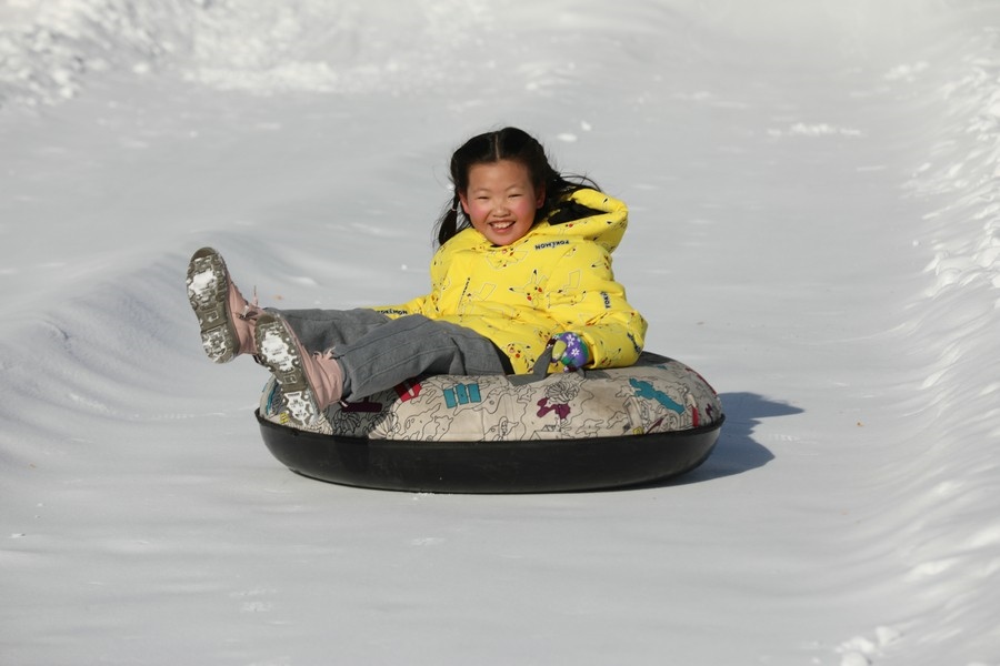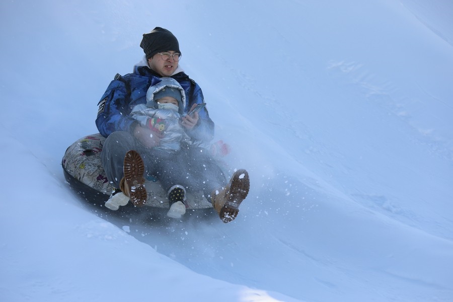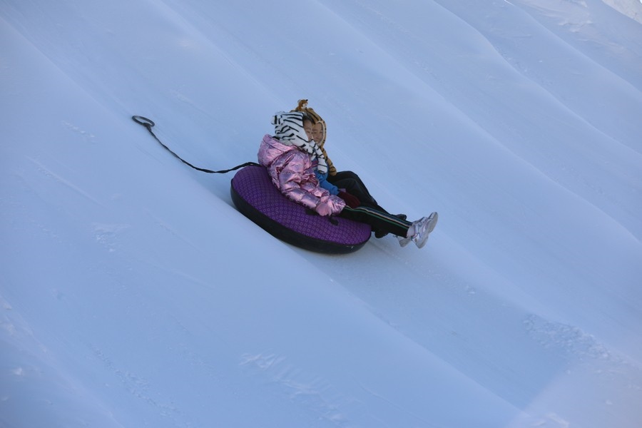 冰滑梯上感受冰雪刺激    記者 張楊攝影