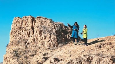 高曉梅(右)在內(nèi)蒙古烏蘭察布市涼城縣考察長城時(shí)向羊倌問路。
