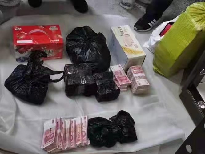 據(jù)辦案民警介紹,史某某夫婦回家所拎黑色袋子裝的是從黃某安、黃某軍手中購買的毒品海洛因,共2416.6克;他們?cè)俅纬鲩T時(shí),兩個(gè)編織袋裝的是毒資,共275萬余元。