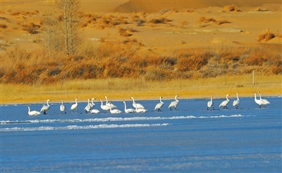 3月的鄂托克草原春光明媚、萬物復蘇。黃河一級支流——都思圖河兩岸,風吹草偃間,珍禽掠影過,灰鶴、赤麻鴨、天鵝、豆雁等各種鳥類在河中嬉戲打鬧,一幅人與自然和諧共生的美麗生態(tài)畫卷徐徐呈現(xiàn)。