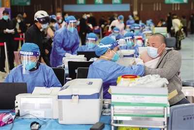 “請大家有序排隊,間隔一米安全距離,接種過程全程佩戴好口罩,主動出示健康碼、行程碼……”現(xiàn)場志愿者不斷提醒著。接種點設(shè)置了知情告知、登記、候種、接種、留觀等區(qū)域,還配備了消殺人員,分時間段進(jìn)行全面消殺,同時,為了防止人員接種后出現(xiàn)不良反應(yīng),還配有專業(yè)醫(yī)護(hù)人員,各個環(huán)節(jié)井然有序,接種流程實行單向循環(huán)。