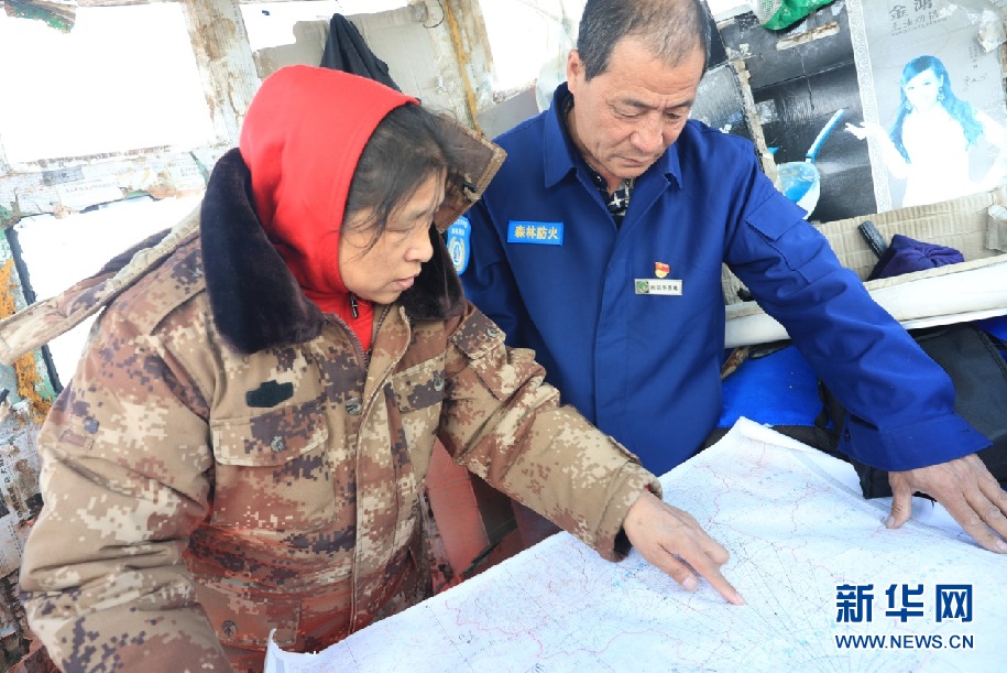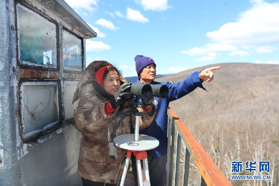 晉顏龍夫婦每天登上瞭望塔,觀察有無火情發(fā)生。新華網(wǎng)發(fā)(欒維敬 攝)