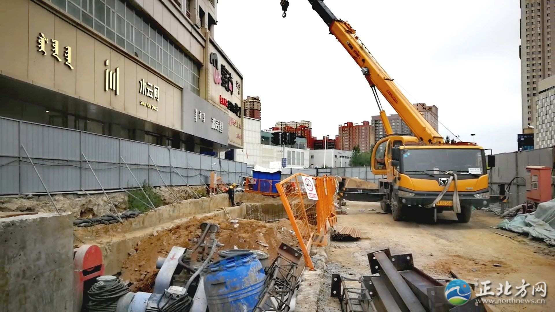 當天,記者來到呼和浩特市鄂爾多斯東街與錫林郭勒南路交會處、凱德廣場東北角看到,一處長約100米的施工圍擋,從外面看進去,一輛施工吊車正在作業(yè)。周邊市民告訴記者,這處圍擋已經(jīng)設(shè)置很久了,一直沒有完工,對周邊的道路通行以及商戶的生意造成一定影響。