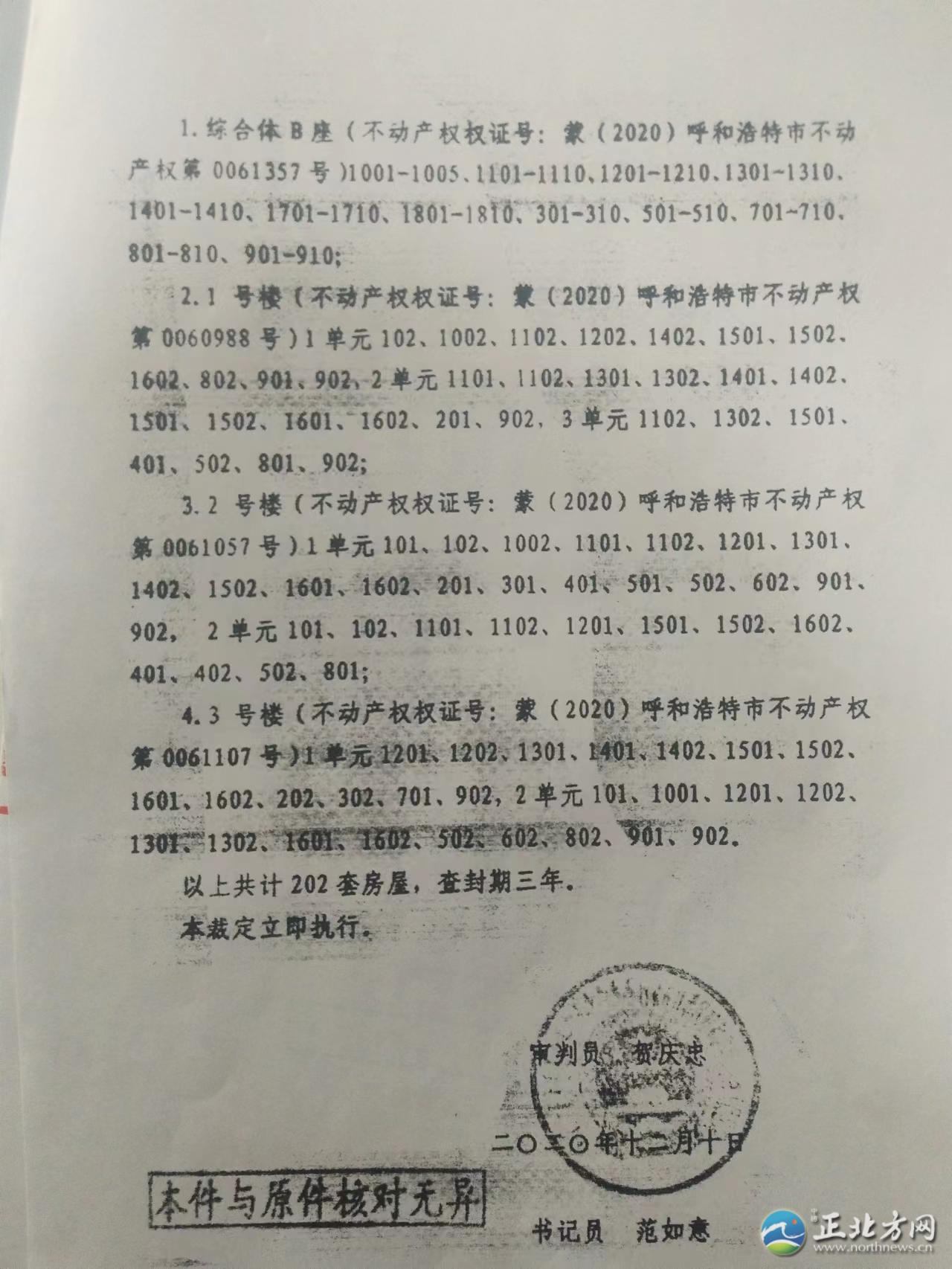 “我們小區(qū)2019年交房,2021年11月份,小區(qū)終于能辦房本了??墒窃谵k理房本的過程中,我們得知小區(qū)住宅樓100多套房子被多個(gè)法院查封了,小區(qū)辦房本的事也就停了下來?,F(xiàn)在,我們找開發(fā)商內(nèi)蒙古世華房地產(chǎn)開發(fā)有限責(zé)任公司(以下簡稱世華房地產(chǎn)公司)問詢?yōu)槭裁捶课荼徊榉?,何時(shí)能夠解封,可是開發(fā)商躲著不見我們!這事究竟歸誰管呢?”近日,呼和浩特市玉泉區(qū)上國名都業(yè)主向北方新報(bào)正北方網(wǎng)記者反映。