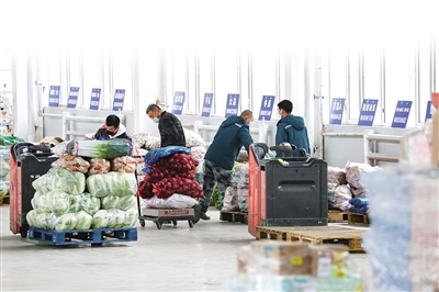 疫情防控期間,為保障呼和浩特市民生活物資需求,首府積極組織貨源,優(yōu)化配送方式,全力加強(qiáng)市場供給。目前,城區(qū)多家線上平臺(tái)、大型超市、農(nóng)貿(mào)市場商品品種齊全、供應(yīng)充足。10月10日,記者在家家悅內(nèi)蒙古生鮮倉看到,為了保證市民線上下單的及時(shí)配送,工作人員正在線下忙碌。