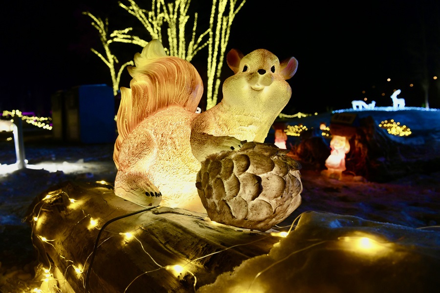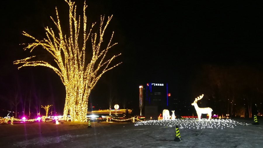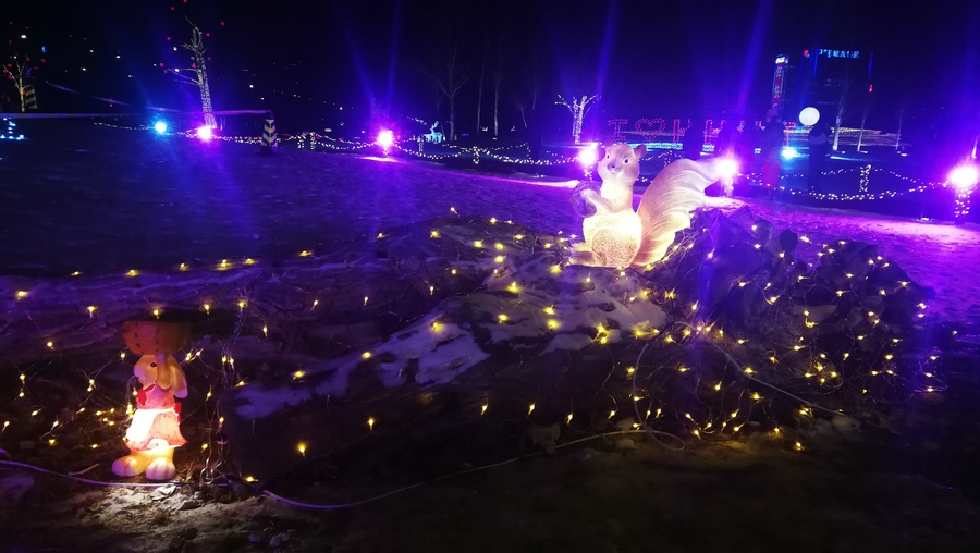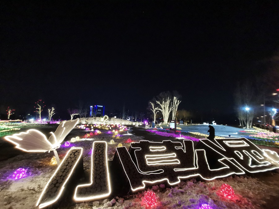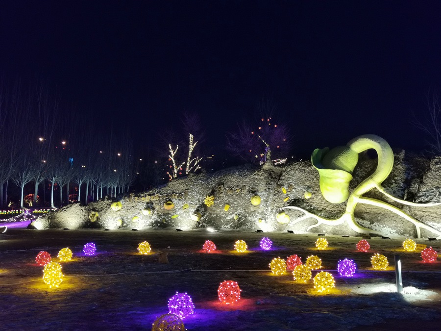 串燈、月球燈、抱樹燈、地插花、氣球燈點綴,搭配動物造型燈,整個小草公園生機(jī)勃勃?!翱茨沁呥€有雪人”,小朋友的歡呼聲打破了夜晚的寂靜。