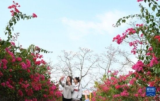 眼下正值海南昌江黎族自治縣木棉花盛開(kāi)時(shí)節(jié),不少游客前來(lái)踏青賞花。
