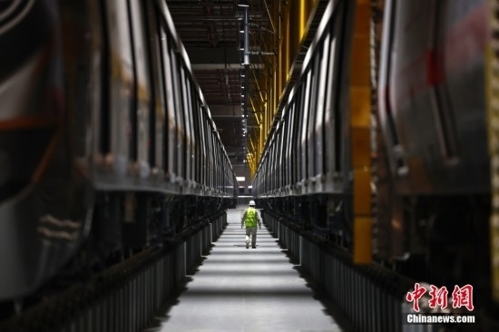 2月20日,工作人員在北京地鐵12號(hào)線東壩車輛段巡查列車。北京地鐵12號(hào)線正線全長(zhǎng)為29.6km,西起西四環(huán)四季青橋南,東至東壩北街,途經(jīng)海淀、西城、東城、朝陽四個(gè)行政區(qū),全線共設(shè)21座車站,其中換乘站15座,全線建成通車后,將與4號(hào)線、5號(hào)線、8號(hào)線等12條線路實(shí)現(xiàn)換乘。當(dāng)前12號(hào)線車輛陸續(xù)進(jìn)場(chǎng),工程正在加速推進(jìn)。中新社記者 富田 攝