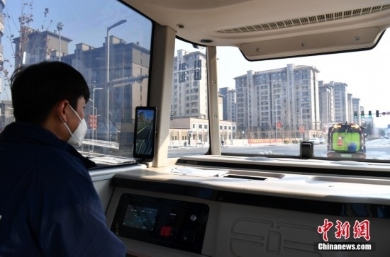 2月22日,智能網(wǎng)聯(lián)巴士901線測試車輛??抗徽九_。雄安新區(qū)的智能網(wǎng)聯(lián)巴士近期正在進(jìn)行投入運(yùn)營前的道路測試,該巴士配備了超高感度攝像頭、超聲波雷達(dá)、激光雷達(dá)、毫米波雷達(dá)等感知設(shè)備,組成了車輛的“眼睛”。車輛可自主識別紅綠燈、道路提示牌和車道標(biāo)線等,做出跟車、超車、停車等動作。中新社記者 韓冰 攝