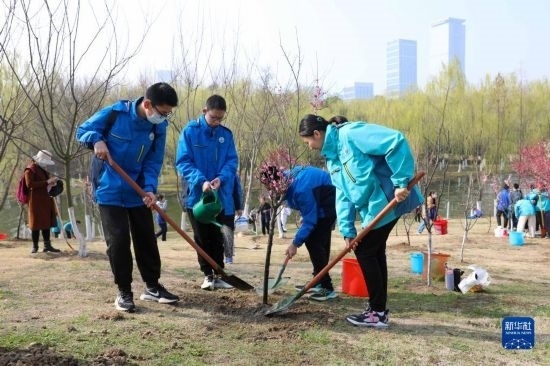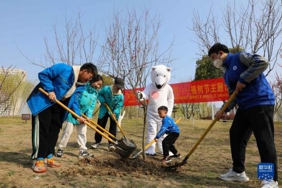 當(dāng)日,合肥市包河區(qū)濱湖世紀(jì)社區(qū)聯(lián)合轄區(qū)消防工作人員在雨水公園開(kāi)展“手牽手護(hù)綠一起行”義務(wù)植樹(shù)活動(dòng),綠化家園。