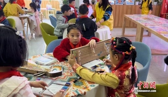小朋友們用環(huán)保材料制作“民族樂(lè)器”。中新網(wǎng)記者 劉湃 攝